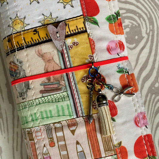 Back To School refillable art journal with cold press watercolor paper | cute patchwork sketchbook with elastic band & pocket inside cover